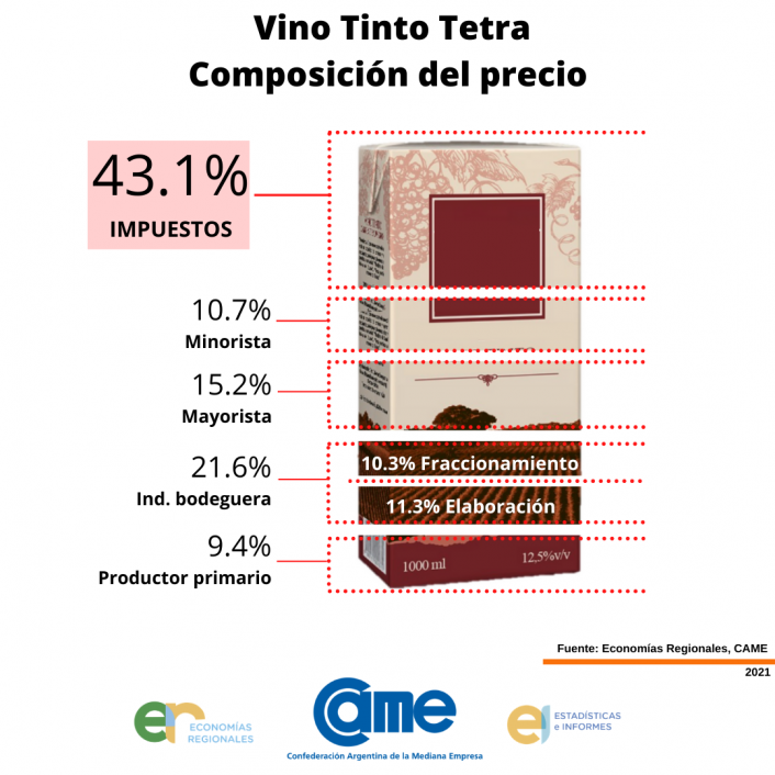 13-3-2021: ¿Quién se ha tomado todo el vino?: Los impuestos explican alrededor del 43% del tetra y la botella de 750 cc.